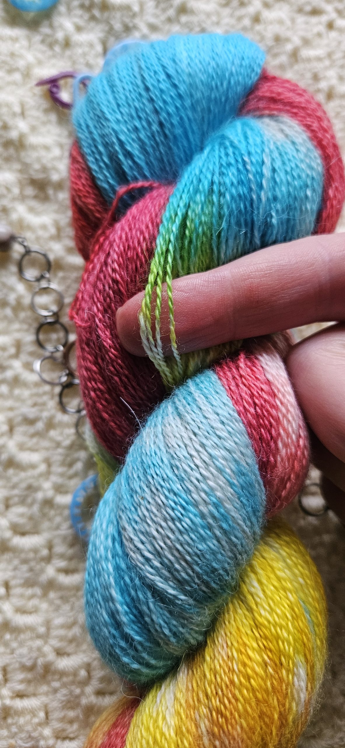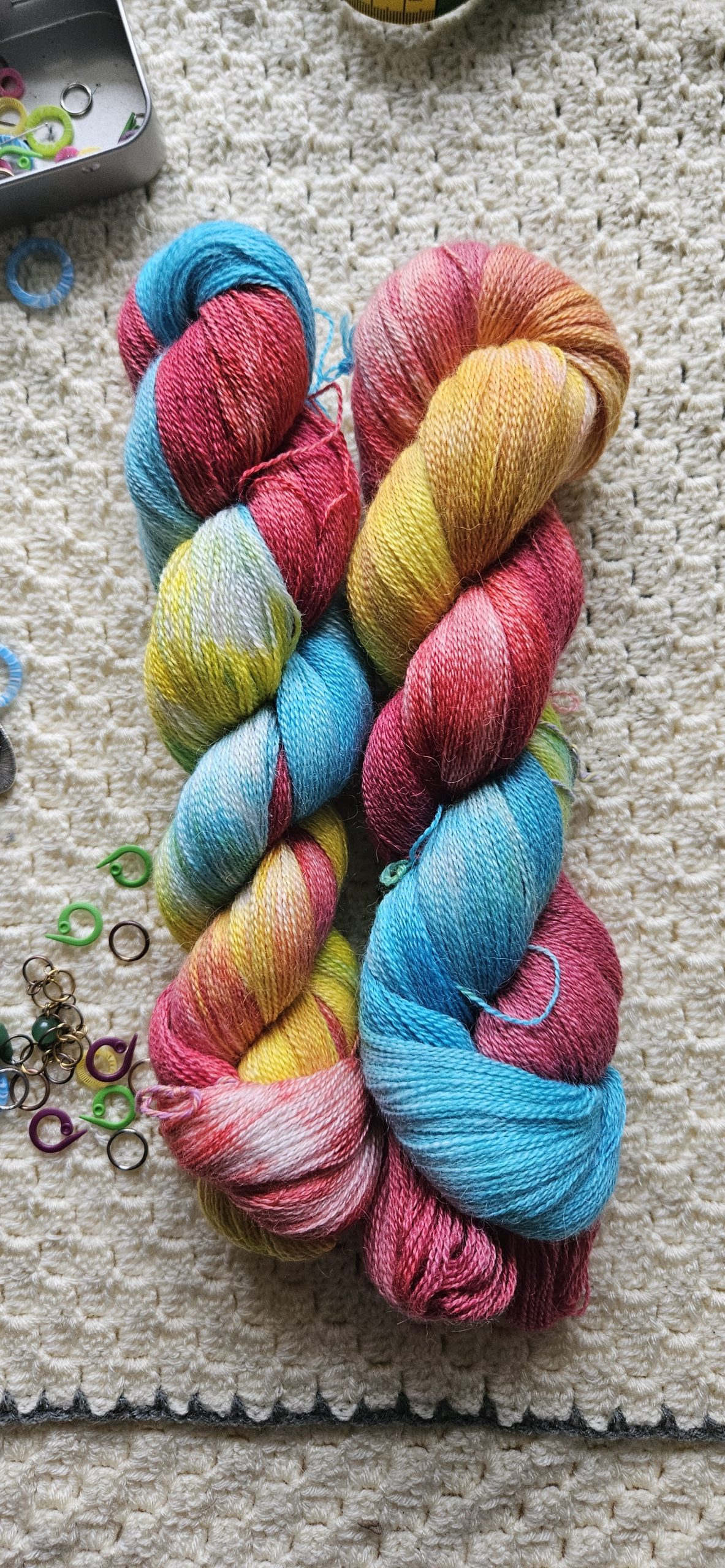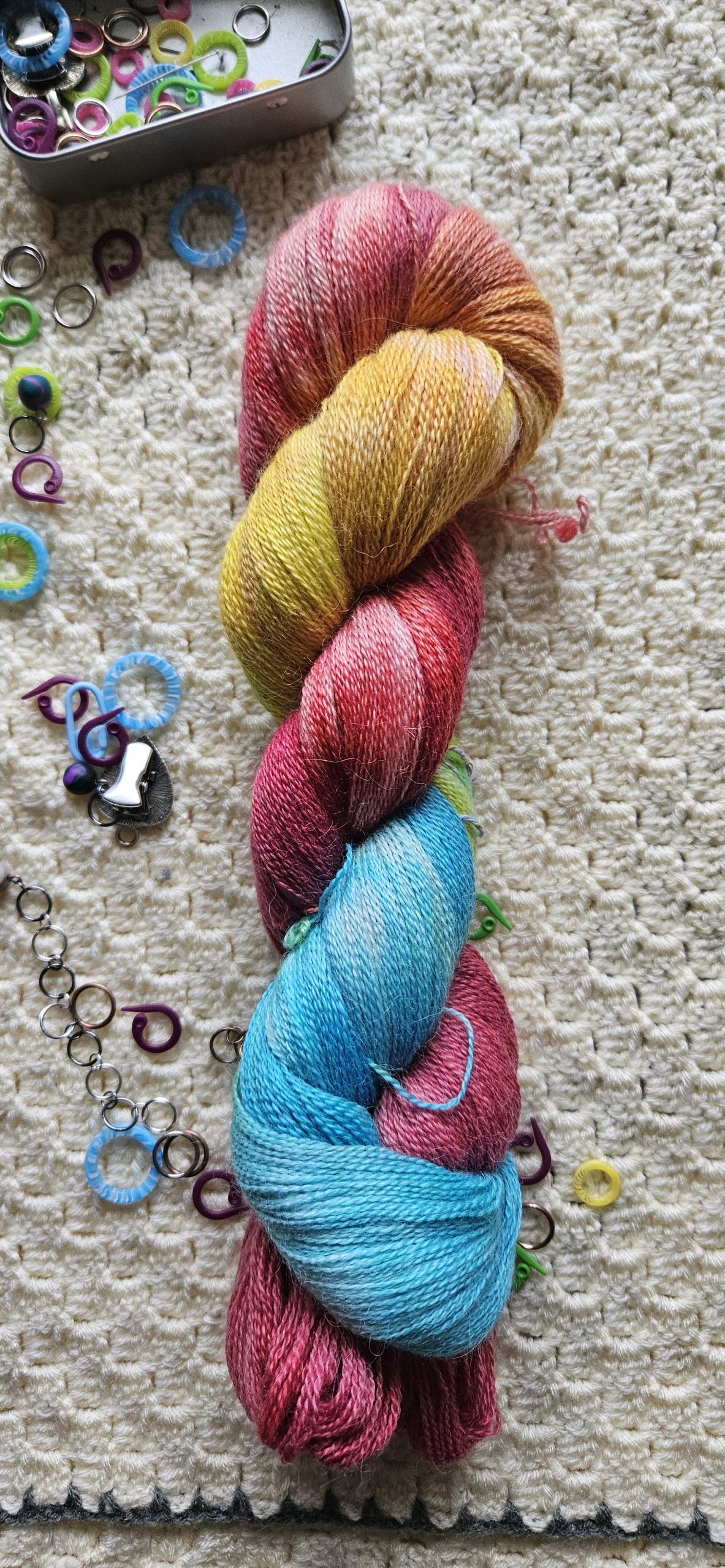 Scarlet Macaw, eller lyserød ara, er det nyeste garn i flokken. Garnet er et ultrablødt lace garn, som er perfekt som følgetråd eller til meget tynde sjaler og tørklæder. Med sine lange farveskift er det et garn som tilfører et smukt farvespil til garnet, uden at være for voldsomt.